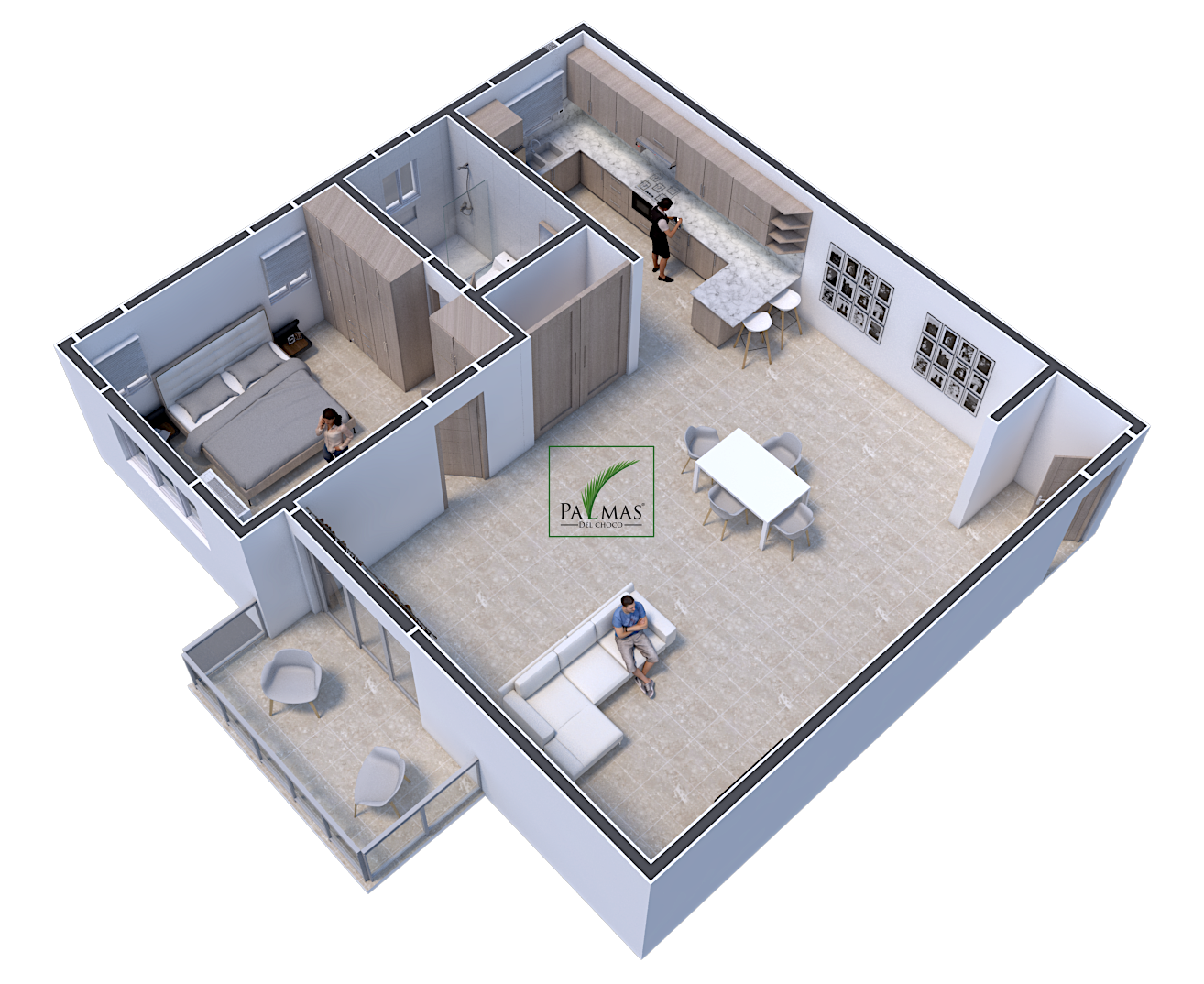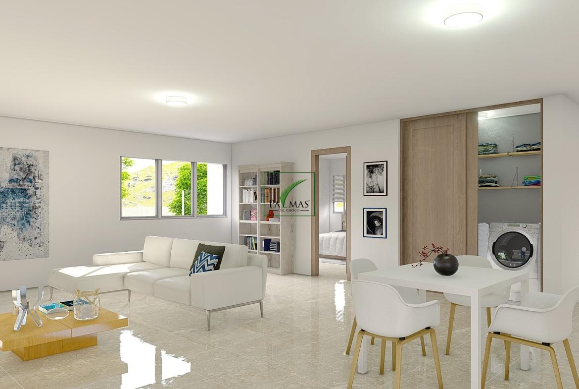 - Spacious Open-Plan Living: The 3A apartment boasts a generous 59 square meter open-plan living space that includes a TV room, dining area, and a modern kitchen.